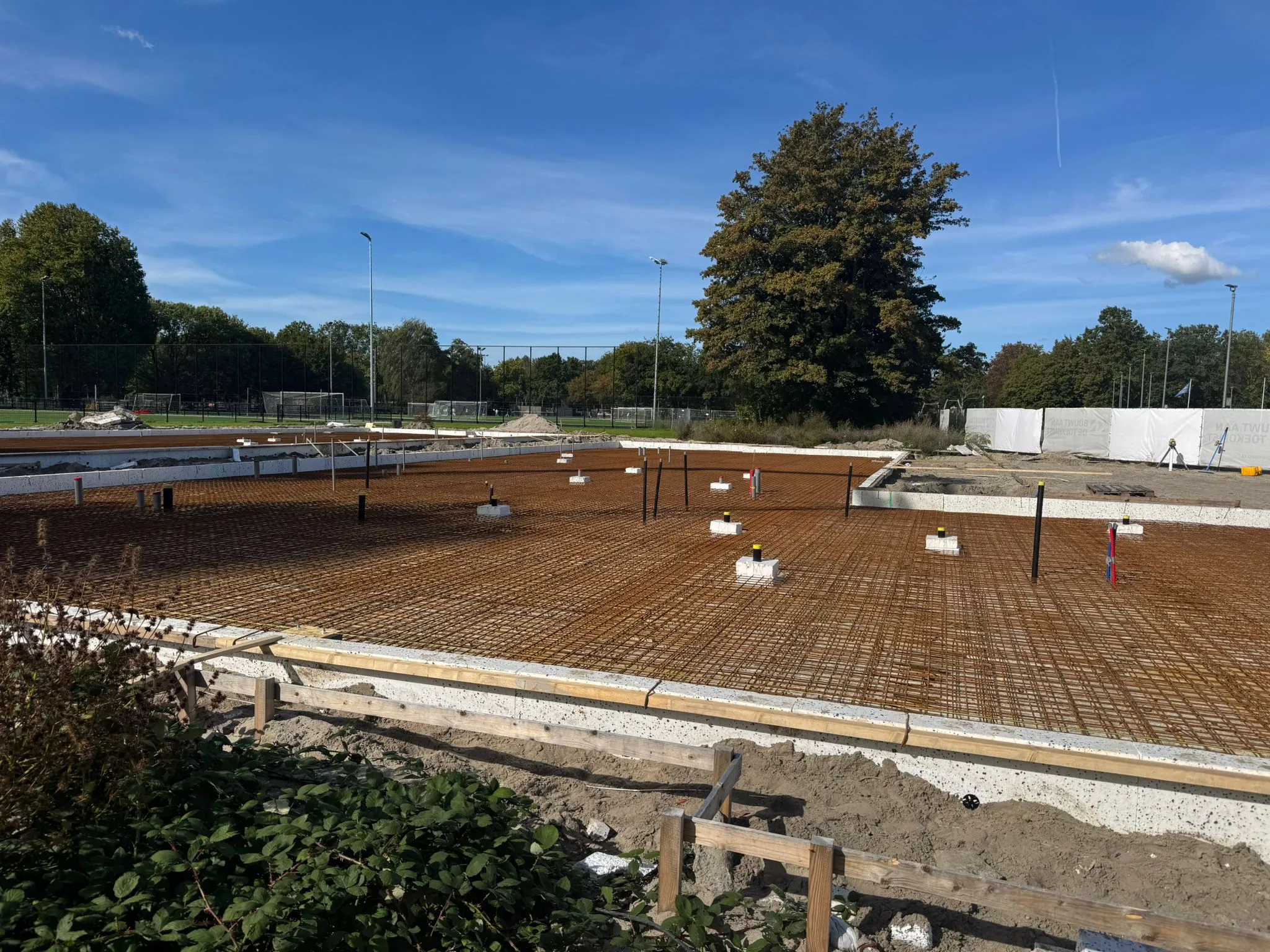 De fundering, het storten van de betonvloer en voorbereidingen voor nutsvoorzieningen, van het nieuwe paviljoen, zijn inmiddels gereed.